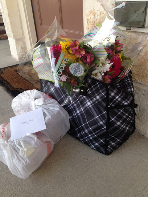 We are surrounded by amazing friends and neighbors who are going through or have been through the same thing, so we have an abundance of support and love here! One example of this love in action was the day we dropped him off, the kids and I came home to the loveliest hug of a care package on our doorstep from a couple of sweet families. It was filled with notes of encouragement, yummy dessert and delicious breakfast all ready for the next day so Mama didn't have to think about what to make, and beautiful flowers to brighten our sad day! Needless to say, coming home to all that made me tear up too...Grateful tears for such a treasure of friends! Everywhere we have lived, God has always provided that, He loves us so much!