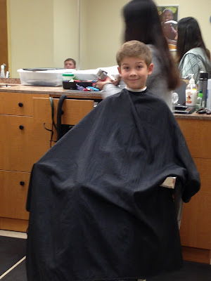 Well Samuel was right, it wasn't quite the same. But I think that was my fault! My mind went blank when the lady asked me how they wanted their hair cut. Uhh.....no, I don't actually. So I asked Joshua, "Do you know what Daddy usually asks them to do?" He couldn't remember exactly but told her what he thought it might be. So she clipped away and it turned out alright in the end. :)