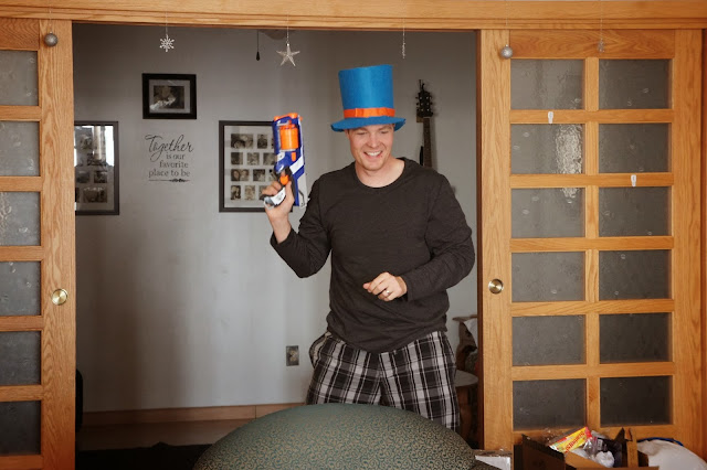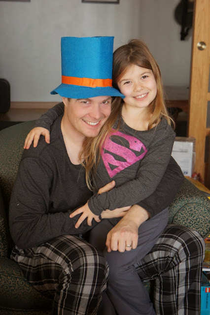 Joy made her Daddy this awesome, bright felt top hat and he was such a sweet Daddy he wore it most of the day. :)
