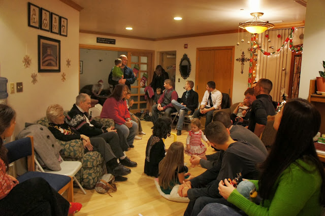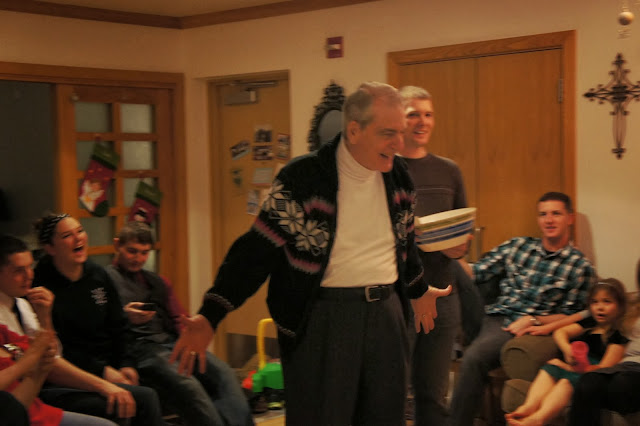 One of our friends had his mom and grandparents visiting this week and they came to the party too! :) Grandpa Archer even got up and played Christmas charades with us!